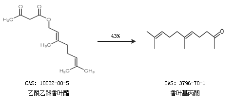 2.通过乙酰乙酸香叶酯合成香叶基丙酮,收率约43%;