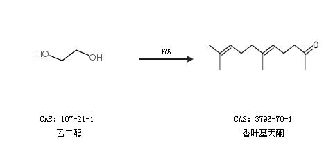 1.通过乙二醇合成香叶基丙酮,收率约6%;