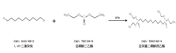 1.通过1,10-二溴癸烷和亚磷酸二乙酯合成亚癸基二磷酸四乙酯,收率约87%;