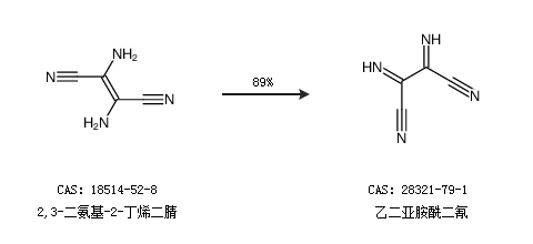 1.通过2,3-二氨基-2-丁烯二腈合成乙二亚胺酰二氰,收率约89%;