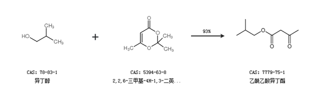 1.通过异丁醇和2,2,6-三甲基-4H-1,3-二英-4-酮合成乙酰乙酸异丁酯,收率约93%;