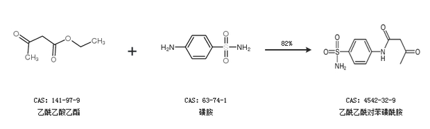 2.通过乙酰乙酸乙酯和磺胺合成乙酰乙酰对苯磺酰胺,收率约82%;