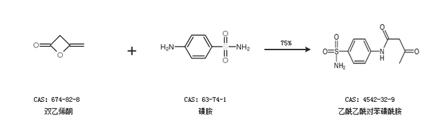 1.通过双乙烯酮和磺胺合成乙酰乙酰对苯磺酰胺,收率约75%;
