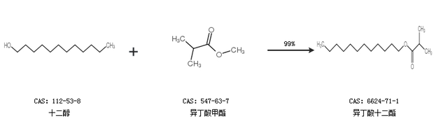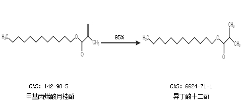 1.通过甲基丙烯酸月桂酯合成异丁酸十二酯,收率约95%;