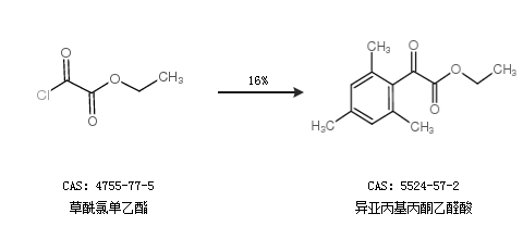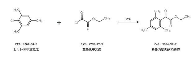 1.通过2,4,6-三甲基氯苯和草酰氯单乙酯合成异亚丙基丙酮乙醛酸,收率约97%;