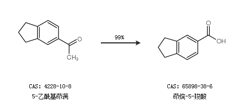 1.通过5-乙酰基茚满合成茚烷-5-羧酸,收率约99%;