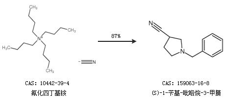 1.通过氰化四丁基铵合成(S)-1-苄基-吡咯烷-3-甲腈,收率约87%;