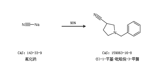 2.通过氰化钠合成(S)-1-苄基-吡咯烷-3-甲腈,收率约90%;