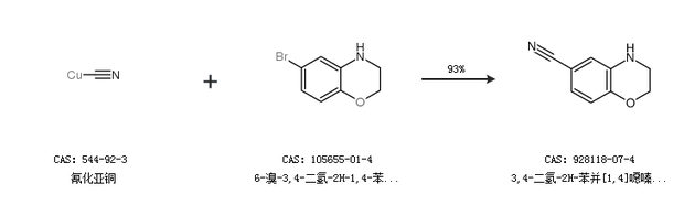 1.通过氰化亚铜和6-溴-3,4-二氢-2H-1,4-苯并恶嗪合成3,4-二氢-2H-苯并[1,4]噁嗪-6-甲腈,收率约93%;