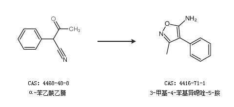1.通过α-苯乙酰乙腈合成3-甲基-4-苯基异噁唑-5-胺