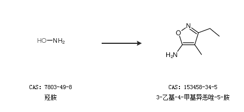 1.通过羟胺合成3-乙基-4-甲基异恶唑-5-胺