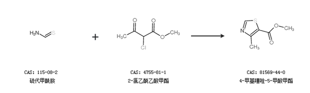 2.通过硫代甲酰胺和2-氯乙酰乙酸甲酯合成4-甲基噻唑-5-甲酸甲酯