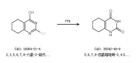 2.通过2,3,5,6,7,8-六氢-2-硫代-4(1H)-喹唑啉酮合成5,6,7,8-四氢喹唑啉-2,4(1H,3H)-二酮,收率约77%;
