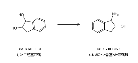 1.通过(1R,2r)-茚满-1,2-二醇合成(1R,2S)-1-氨基-2-茚满醇,收率约61%;