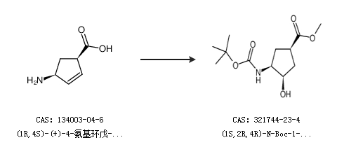 中文名称 (1S,2R,4R)-N-Boc-1-氨基-2-羟基环戊烷-4-羧酸甲酯