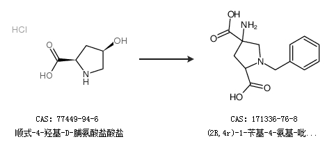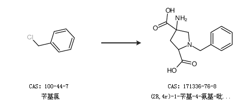 1.通过苄基氯合成(2R,4r)-1-苄基-4-氨基-吡咯烷-2,4-二羧酸