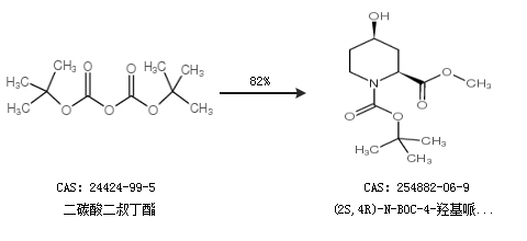 2.通过二碳酸二叔丁酯合成(2S,4R)-N-BOC-4-羟基哌啶-2-羧酸甲酯,收率约82%;