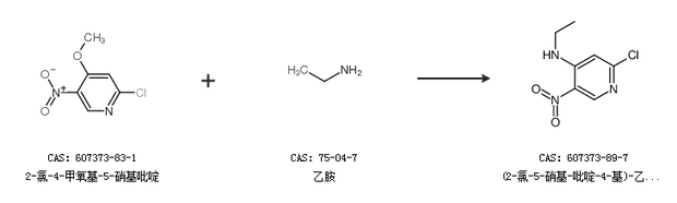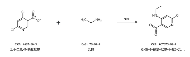 1.通过2,4-二氯-5-硝基吡啶和乙胺合成(2-氯-5-硝基-吡啶-4-基)-乙基-胺,收率约96%;