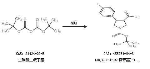 1.通过二碳酸二叔丁酯合成(3R,4r)-4-(4-氟苯基)-1,3-吡咯烷二羧酸 1-(1,1-二甲基乙基)酯,收率约90%;