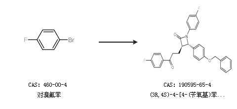 1.通过对溴氟苯合成(3R,4S)-4-[4-(苄氧基)苯基]-1-(4-氟苯基)-3-[3-(4-氟苯基)-3-氧代丙基]氮杂环丁烷-2-酮
