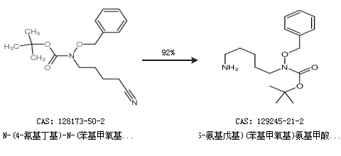 1.通过N-(4-氰基丁基)-N-(苯基甲氧基)氨基甲酸叔丁酯合成(5-氨基戊基)(苯基甲氧基)氨基甲酸叔丁酯,收率约92%;