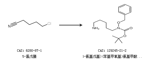2.通过5-氯戊腈合成(5-氨基戊基)(苯基甲氧基)氨基甲酸叔丁酯