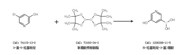 1.通过3-溴-5-羟基吡啶和联硼酸频那醇酯合成(5-羟基吡啶-3-基)硼酸
