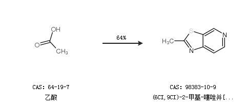 2.通过乙酸合成(6CI,9CI)-2-甲基-噻唑并[5,4-c]吡啶,收率约64%;
