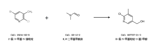 1.通过2-氯-3-甲基-5-溴吡啶和N,N-二甲基甲酰胺合成(6-氯-5-甲基吡啶-3-基)甲醇