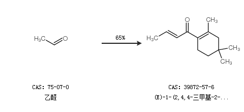 1.通过乙醛合成(E)-1-(2,4,4-三甲基-2-环己烯-1-基)-2-丁烯-1-酮,收率约65%;