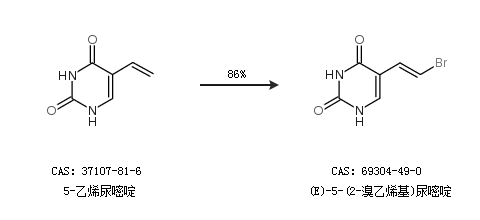 1.通过5-乙烯尿嘧啶合成(E)-5-(2-溴乙烯基)尿嘧啶,收率约86%;