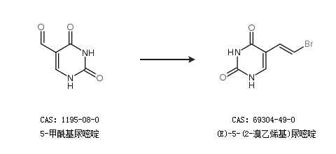 2.通过5-甲酰基尿嘧啶合成(E)-5-(2-溴乙烯基)尿嘧啶