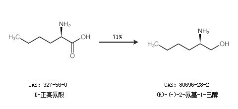 1.通过D-正亮氨酸合成(R)-(-)-2-氨基-1-己醇,收率约71%;