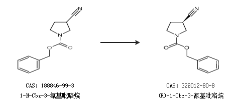 2.通过1-N-Cbz-3-氰基吡咯烷合成(R)-1-Cbz-3-氰基吡咯烷