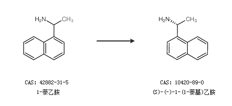 1.通过1-萘乙胺合成(S)-(-)-1-(1-萘基)乙胺,收率约93%;
