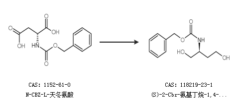2.通过N-CBZ-L-天冬氨酸合成(S)-2-Cbz-氨基丁烷-1,4-二醇