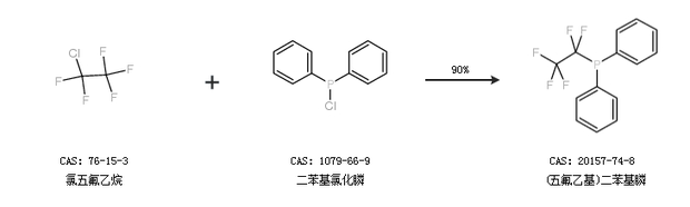 1.通过氯五氟乙烷和二苯基氯化膦合成(五氟乙基)二苯基膦,收率约90%;