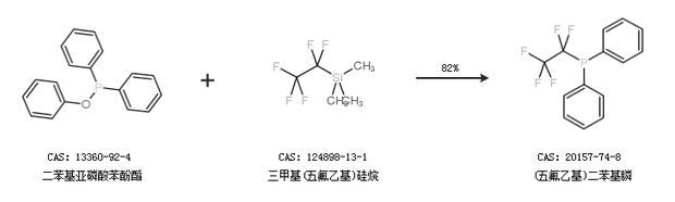 2.通过二苯基亚磷酸苯酚酯和三甲基(五氟乙基)硅烷合成(五氟乙基)二苯基膦,收率约82%;