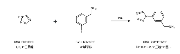1.通过1,2,4-三氮唑和3-碘苄胺合成[3-(1H-1,2,4-三唑-1-基)苯基]甲胺,收率约79%;