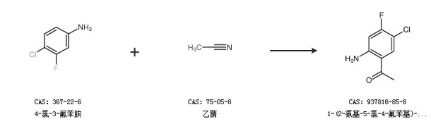 1.通过4-氯-3-氟苯胺和乙腈合成1-(2-氨基-5-氯-4-氟苯基)-乙酮