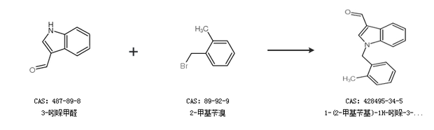 1.通过3-吲哚甲醛和2-甲基苄溴合成1-(2-甲基苄基)-1H-吲哚-3-甲醛