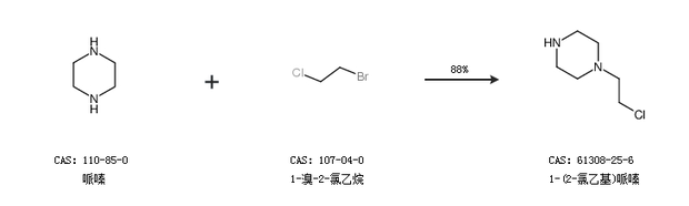 1.通过哌嗪和1-溴-2-氯乙烷合成1-(2-氯乙基)哌嗪,收率约88%;