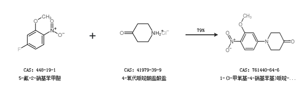 2.通过5-氟-2-硝基苯甲醚和4-氧代哌啶酮盐酸盐合成1-(3-甲氧基-4-硝基苯基)哌啶-4-酮,收率约79%;