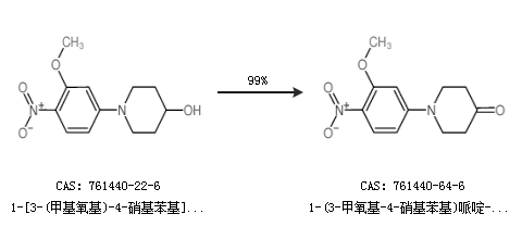 1.通过1-[3-(甲基氧基)-4-硝基苯基]-4-羟基哌啶合成1-(3-甲氧基-4-硝基苯基)哌啶-4-酮,收率约99%;