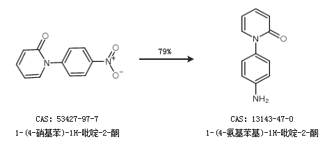 1.通过1-(4-硝基苯)-1H-吡啶-2-酮合成1-(4-氨基苯基)-1H-吡啶-2-酮,收率约79%;