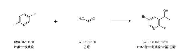 2.通过2-氟-5-溴吡啶和乙醛合成1-(5-溴-2-氟吡啶-3-基)乙醇
