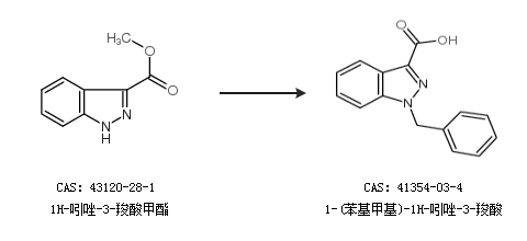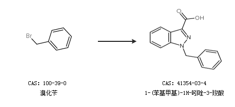 1.通过溴化苄合成1-(苯基甲基)-1H-吲唑-3-羧酸