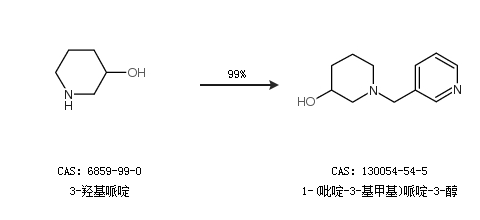1.通过3-羟基哌啶合成1-(吡啶-3-基甲基)哌啶-3-醇,收率约99%;
