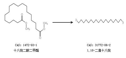 2.通过十八烷二酸二甲酯合成1,18-二溴十八烷