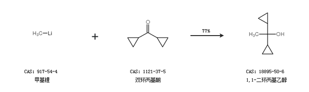 2.通过甲基锂和双环丙基酮合成1,1-二环丙基乙醇,收率约77%;